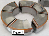 When the bearing was removed from the machine, all the thrust pads showed some signs of distress, as shown in Figure 1.