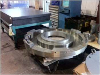 After the successful installation of the first bearing in 2006, the utility issued an order for the remaining six sets in 2011. We received the used parts from the third set, and have scheduled the subsequent sets to be retrofitted every six to nine months. For each set, the customer will send us the existing housing, cooling bundle, spring bed bearing and thrust runner. We will evaluate and repair the thrust blocks and their runners, clean and paint the housings, and repair or replace the cooling bundles. We will also make new 56" KBV-style thrust bearings, complete with high pressure lifts, to replace the original bearings. The revamped assemblies will be shipped to the site, and if necessary, we will provide field service technicians to supervise the installation.