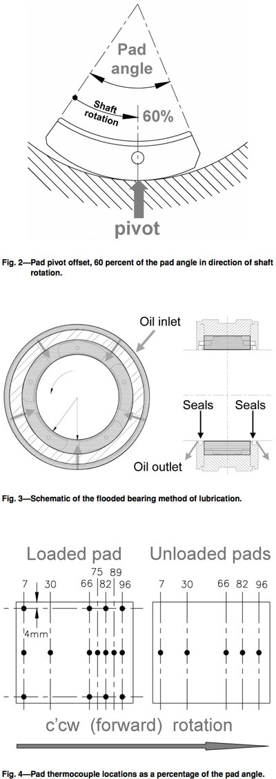 lubricated, 60 percent offset pivoted shoe journal bearing in forward