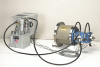 To maintain position, an active control system was incorporated into the unit. The operator provides a 4-20mA input signal reflecting the desired position, or set point. The input signal is compared to the output from a linear proximity probe. The active control system compensates for the difference in the two signals by adjusting the position of the hydraulic cylinder. This process continues until the linear probe and the set point correspond to the desired position. The cylinder provides the position as well as the necessary force.
