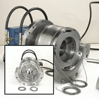 This two degrees of freedom system would absorb a 24,000 pound thrust load while the shaft translated axially 3" and rotated at 3,000 rpm. The thrust actuator would do all this while maintaining a linear position accuracy of +/- 0.001".